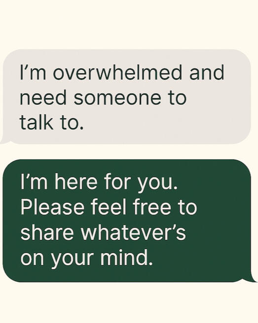 Instant, empathetic conversations via SMS, powered by compassionate AI, whenever caregivers want or need to chat.